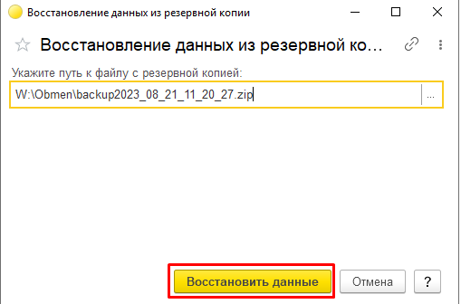 Способ № 2. Восстановление резервной копии из файла *.1CD