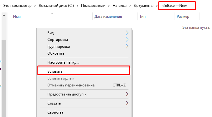 - Найдите файл базы данных. Обычно путь к нему будет выглядеть так: C:\Users\Имя Пользователя\Documents\InfoBase/1Cv8.1CD. Скопируйте файл, при этом 1С должен быть закрыт.